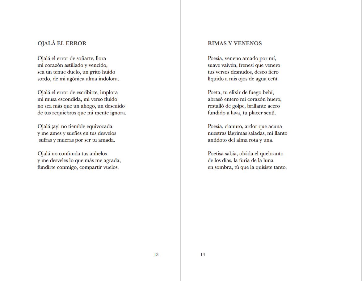 "Rimas y venenos" es el poemario Uno, una audacia tardía de una poetisa novel. Son 63 poemas, algunos con rima y otros... no. Poesía por descubrir, todo luz sin costuras, ni límites; una luz absoluta sin espacio, ni tiempo.